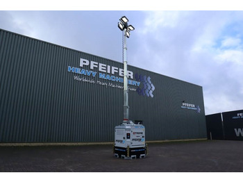 Disponible sur demandeThis Trime X-Box 4 x 320 LED has a valid inspection and can be sold with warranty. Inform about our conditions! Manufacturer: Trime Typ: X-Box 4 x 320 LED Building year: 2024 Serial nr: 350240094 Fuel: Diesel Floodlights: Type: LED Power (each) 320W Floodlights number: 4 Illuminated area (SQM) 9300 Mast Lifting method: Hydraulic Max Height: 8,5 m Max Wind Speed: 110 km/h Rotation: 340° Alternator: Model: Synchronous Frequency (Hz) 50 Insulation class: H Degree of protection: IP 23 Single phase voltage: 33,5kVA - 230V Auxiliary outlets: 1 kVA Engine Model: Kubota Z482 Fuel: Diesel r.p.m: 1500 Tank capacity (l) 220 Consumption (l/h) 0,55 Running time: 400h Noise leveldB(A) at 7m: 65 * Multi-directionally adjustable and tiltable floodlights * 7 sections hydraulic vertical tower 8,5 m, 340° rotatable * Standard light sensor for machine power on and off * Galvanized metalworks * 80 µm powder coating * Very compact dimensions, up to 22 units per truck * Central lifting eye longitudinal and transversal forklift pockets for effective handling * Plug & play, colour coded cables and connectors * Guided main coiled cable to avoid damage during tower operation * Digital control panel and fuel level indicator * Circuit breaker for electrical protection against overload * External emergency stop button * Fully bunded tank, 110% * Certified wind stability up tp 110 km/h * 4 extendable & height adjustable stabilizers * On board levels for guidance during stabilization CE (Declaration of Conformity). More detailed pictures / product movie on our website. pfeifermachinery.com Above specifications are subject to change without prior notice and subject to errors